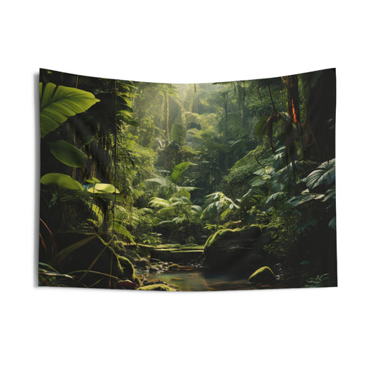 Rainforest Jungle Tapestry, Green Nature Wall Art Hanging Cool Unique Landscape Aesthetic Large Small Decor Bedroom College Dorm Room
