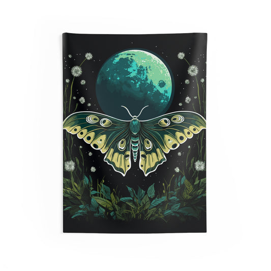 Luna Moth Tapestry, Moon Wall Art Hanging Cool Unique Vertical Aesthetic Large Small Decor Bedroom College Dorm Room