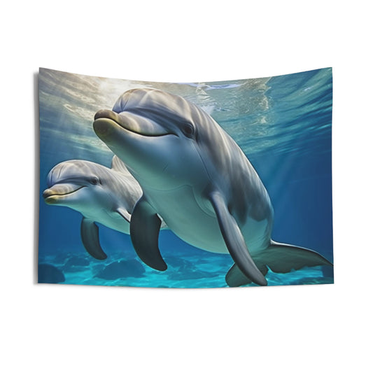 Dolphins Tapestry, Sea Ocean Underwater Wall Art Hanging Cool Unique Landscape Aesthetic Large Small Decor Bedroom College Dorm Room