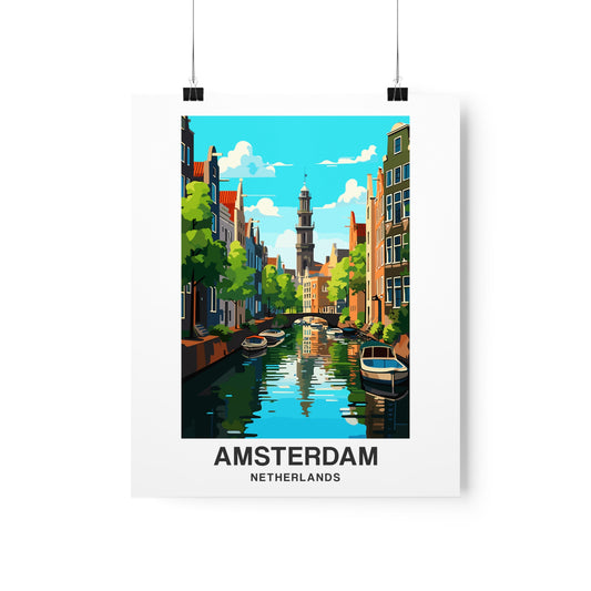 Amsterdam Canals Poster Print, Netherlands Picture Wall Image Art Vertical Travel Paper Artwork Small Large Room Office Decor