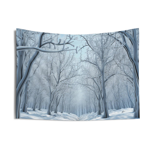 Winter Snow Forest Tapestry, Woods Wall Art Hanging Cool Unique Landscape Aesthetic Large Small Decor Bedroom College Dorm Room