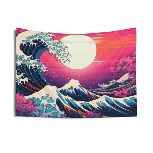 Great Wave Vaporwave Tapestry, Synthwave Japanese 80s 90s Wall Art Hanging Cool Unique Landscape Aesthetic Large Small College Dorm