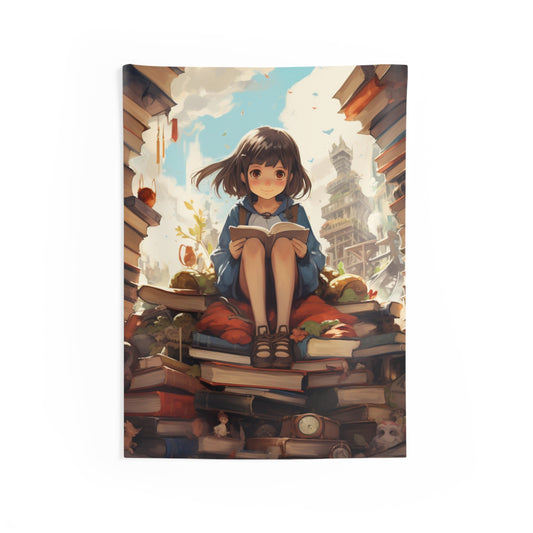 Girl Reading Books Tapestry, Library Wall Art Hanging Cool Unique Vertical Aesthetic Large Small Decor Bedroom College Dorm Room