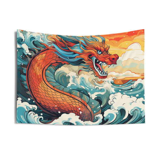 Dragon Tapestry, Japanese Waves Chinese Red Wall Art Hanging Cool Unique Landscape Aesthetic Large Small Decor Bedroom College Dorm