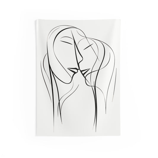 Line Art Lovers Tapestry, Minimalist Abstract Single Line Wall Art Hanging Cool Unique Vertical Aesthetic Large Small Bedroom College Dorm