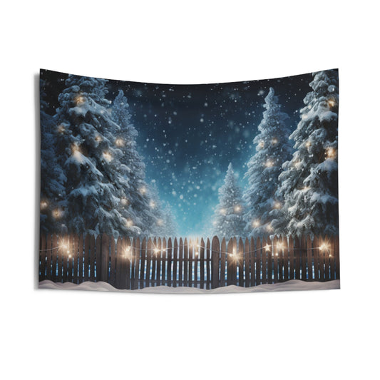 Christmas Trees Tapestry, Snow Lights Xmas Wall Art Hanging Cool Unique Landscape Aesthetic Large Small Decor Bedroom College Room