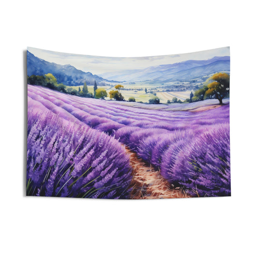 Lavender Field Tapestry, Flowers Watercolor Purple Wall Art Hanging Cool Unique Landscape Aesthetic Large Small Decor Bedroom College Dorm