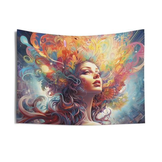 Psychedelic Tapestry, Women Mind Wall Art Hanging Cool Unique Landscape Aesthetic Large Small Decor Bedroom College Dorm Room