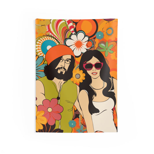 Groovy 1970s Tapestry, Hippie Funky Retro Floral Wall Art Hanging Cool Unique Vertical Aesthetic Large Small Bedroom College Dorm Room