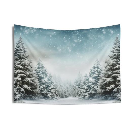 Winter Trees Tapestry, Pine Snowing Wall Art Hanging Cool Unique Landscape Aesthetic Large Small Decor Bedroom College Dorm Room