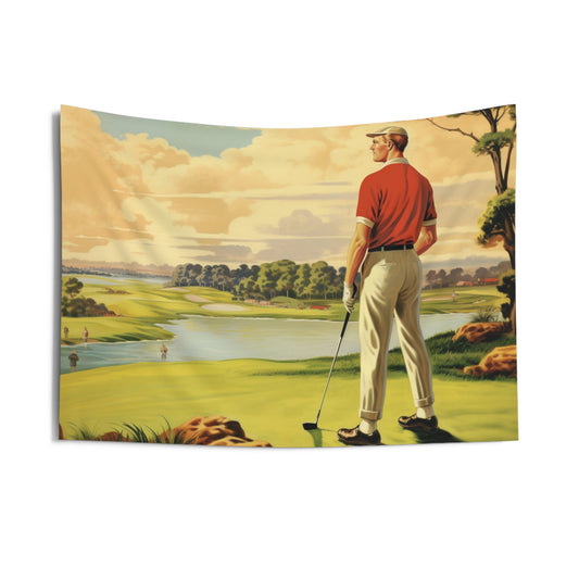 Golf Tapestry, Golfing Men Vintage Retro Wall Art Hanging Cool Unique Landscape Aesthetic Large Small Bedroom College Dorm Room
