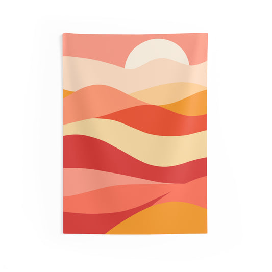 Boho Sun Tapestry, Minimalist Pink Hills Wall Art Hanging Cool Unique Vertical Aesthetic Large Small Decor Bedroom College Dorm Room