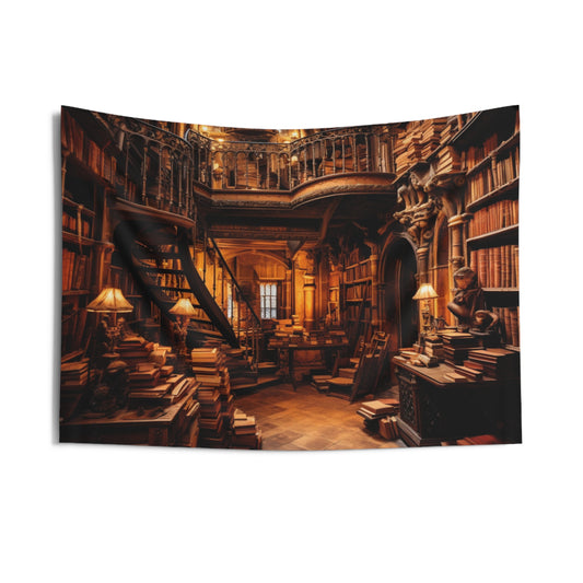 Vintage Library Tapestry, Retro Books Wall Art Hanging Cool Unique Landscape Aesthetic Large Small Decor Bedroom College Dorm Room