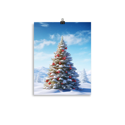 Christmas Tree Poster Print, Lights Snow Xmas Photo Wall Art Vertical Horizontal Travel Paper Artwork Small Large Cool Room Office Decor