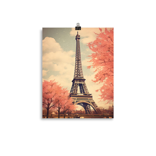 Paris Poster Print, Eifel Tower France Vintage Picture Photo Wall Image Art Vertical Travel Paper Artwork Small Large Cool Room Office Decor
