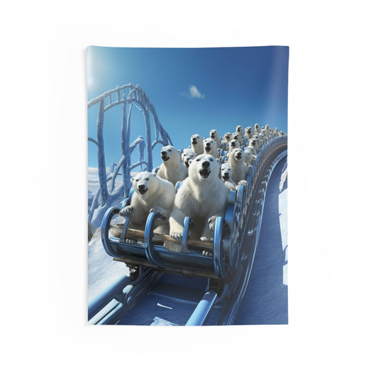 Funny Tapestry, Polar Bears Roller Coaster Silly Cute Wall Art Hanging Cool Unique Vertical Large Small Decor Bedroom College Dorm Room