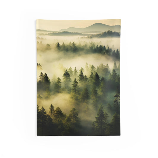 Foggy Pine Trees Tapestry, Fog Forest Mountain Wall Art Hanging Cool Unique Vertical Aesthetic Large Small Decor Bedroom College Dorm Room