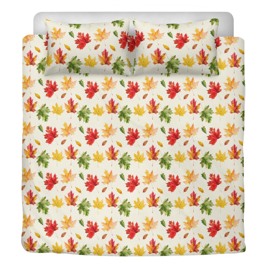 Maple Leaf Bedding Set (3pcs), Fall Autumn One Duvet Cover and Two Pillow Covers California King Queen Full Twin Bed Bedroom Decor