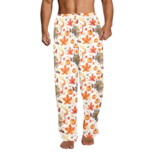 Thanksgiving Men Pajamas Pants, Fall Autumn Leaf Turkey Pumpkins PJ Adult Pockets Sleep Lounge Trousers Guys Male Matching Sleepwear Bottoms