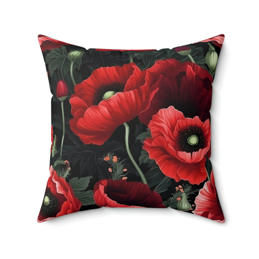 Poppy Filled Pillow with Insert, Red Poppies Floral Flowers Square Throw Accent Decorative Room Decor Floor Sofa Couch Cushion