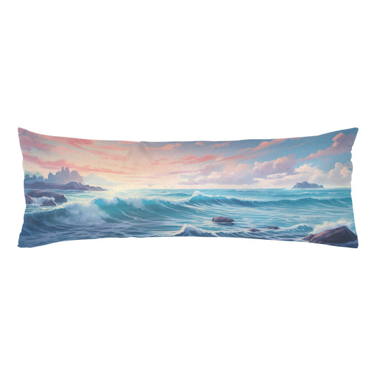 Ocean Body Pillow Case, Sunset Sea Beach Long Full Large Bed Cute Accent Print Throw Decor Decorative Cover 20x54 Satin