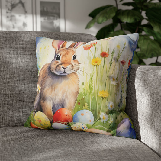Rabbit Easter Eggs Pillow Case, Bunny Spring Flowers Square Throw Decorative Cover Room Décor Couch Cushion 20 x 20 Zipper Sofa