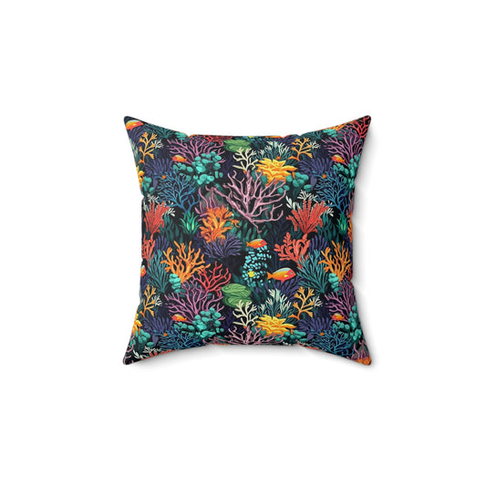 Coral Reef Filled Pillow with Insert, Coastal Ocean Tropical Fish Beach Square Throw Accent Decorative Room Decor Floor Sofa Couch Cushion