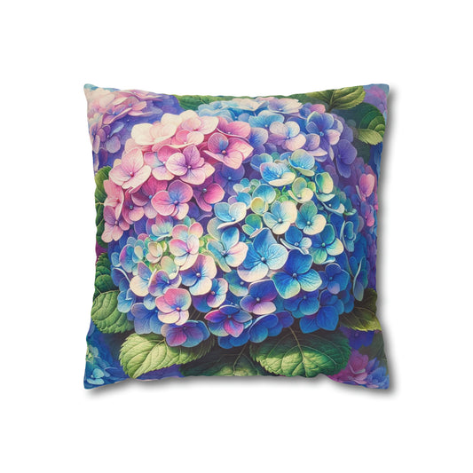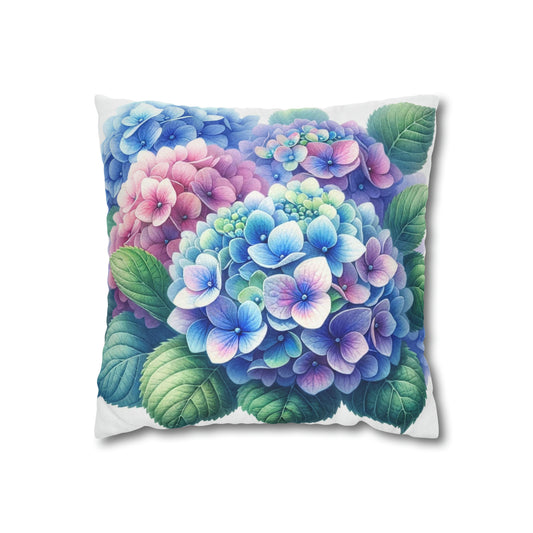 Hydrangea Flowers Pillow Case, Watercolor Floral Art Blue Pink Square Throw Decorative Cover Decor Couch Cushion 20 x 20 Zipper Sofa