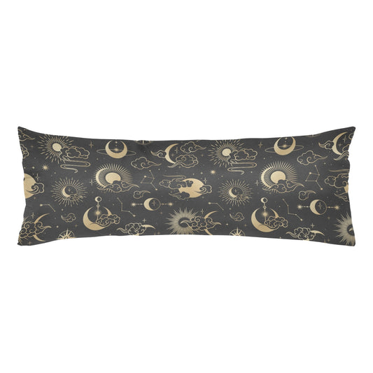 Sun Moon Stars Body Pillow Case, Constellation Space Black Long Large Bed Accent Print Throw Decor Decorative Cover 20x54 Zipper