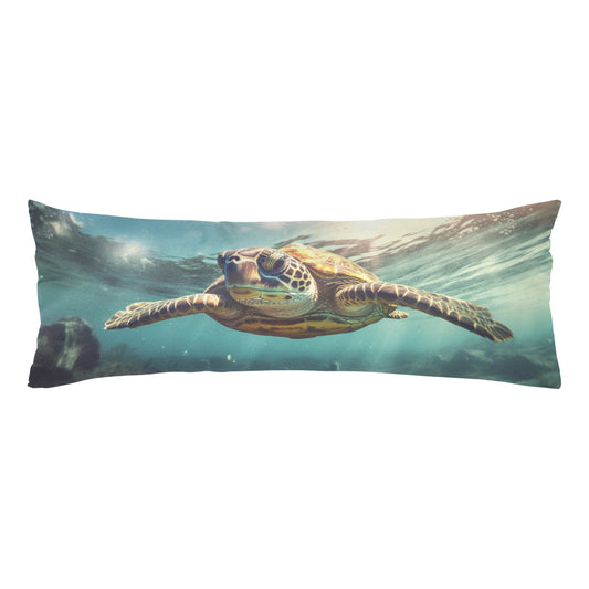 Sea Turtle Body Pillow Case, Ocean Underwater Long Full Large Bed Accent Print Throw Decor Decorative Cover 20x54 Satin