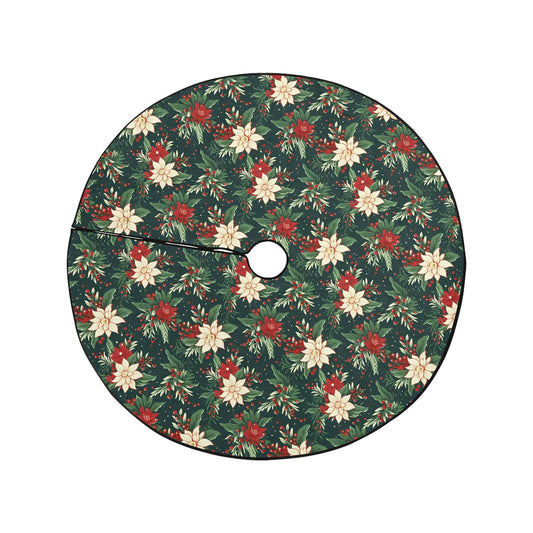 Green Vintage Christmas Tree Skirt, Retro Floral Berries Xmas Stand Small Large Base Cover Holiday Decor 30 36 47 Inch Decoration Party
