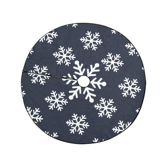 Navy Blue Christmas Tree Skirt, White Snow Flakes Vintage Stand Small Large Base Washable Cover Home Decor Farmhouse Decoration Party