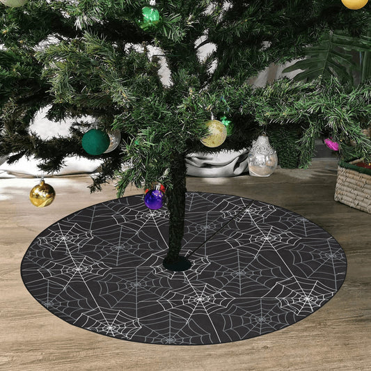 Spiderweb Halloween Tree Skirt, Black Goth Vampire Christmas Stand Base Cover Home Decor Decoration All Hallows Eve Creepy Spooky Party