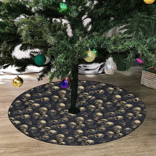 Skulls Halloween Tree Skirt, Spooky Black Christmas Horror Base Small Medium Large Cover Gothic Decoration All Hallows Eve Creepy Scary Xmas