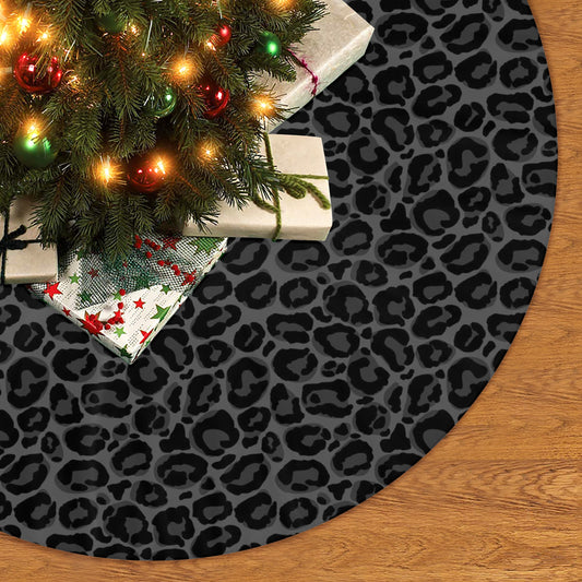 Black Leopard Christmas Tree Skirt, Grey Animal Cheetah Print Vintage Xmas Cover Decor Decoration 30 36 48 Inch Small Large Party Decoration
