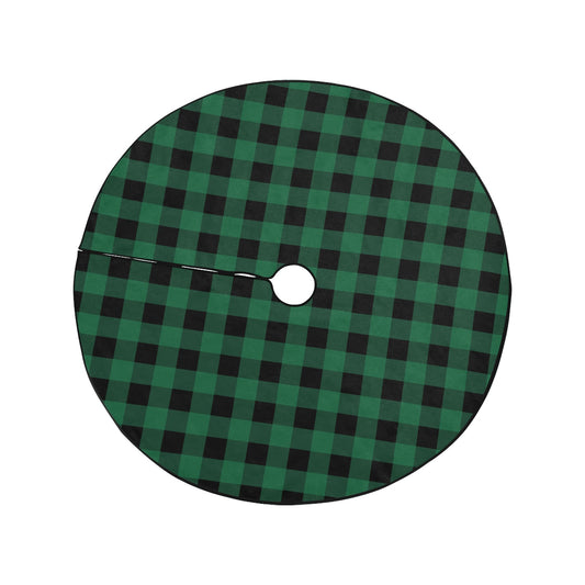 Green Buffalo Plaid Christmas Tree Skirt, Black Check Vintage Tartan Checkered Stand Small Large Base Cover Holiday Decor Decoration Party