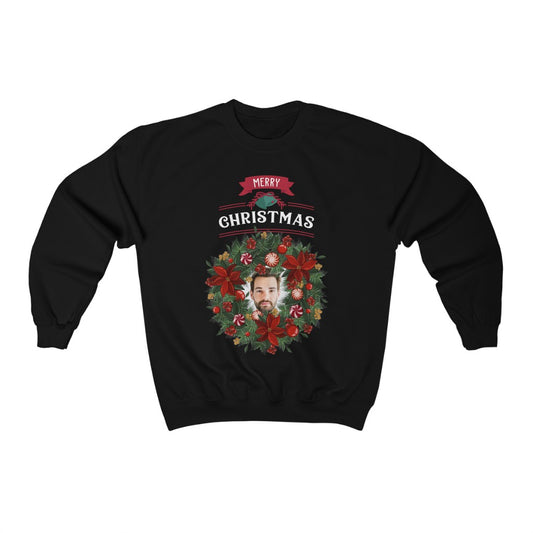 Custom Face Ugly Christmas Sweater, Funny Xmas Wreath Couples Sweatshirt Personalized Photo Dog Pet Matching Family Plus Size Gift