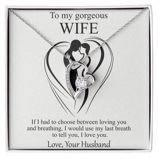To My Wife Necklace from Husband, Message Line Art Drawing Card Love Pendant Gold Anniversary Jewelry Birthday Christmas Valentine Gift