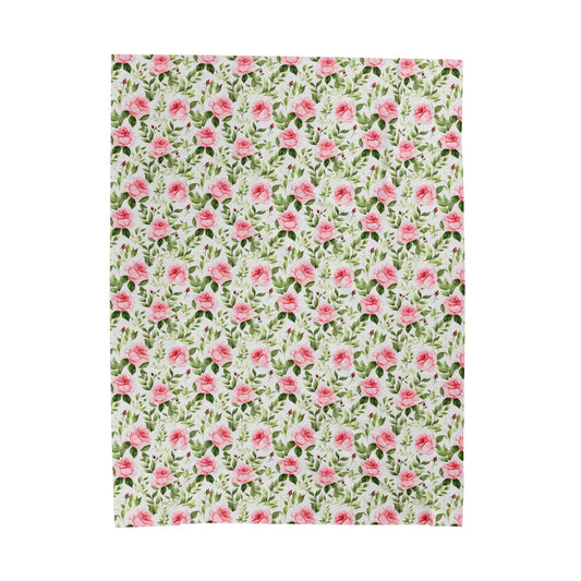 Pink Flowers Fleece Throw Blanket, Floral White Velveteen Soft Plush Fluffy Cozy Warm Adult Kids Small Large Sofa Decor Gift