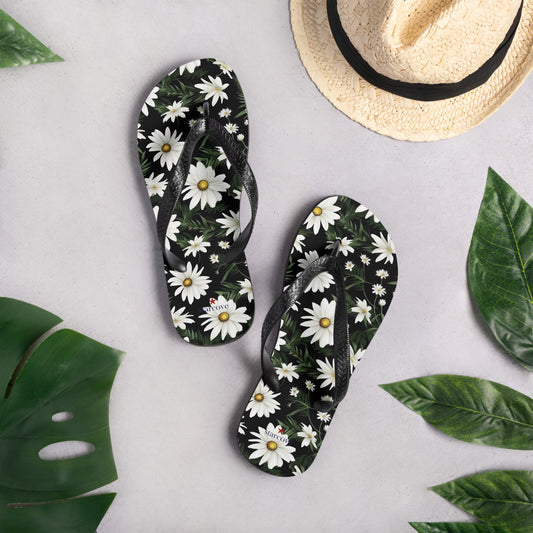 Daisy Flip Flops, White Floral Flowers Comfortable Thong Sandals Summer Woman Men Beach Print Rubber Slip On Shoes