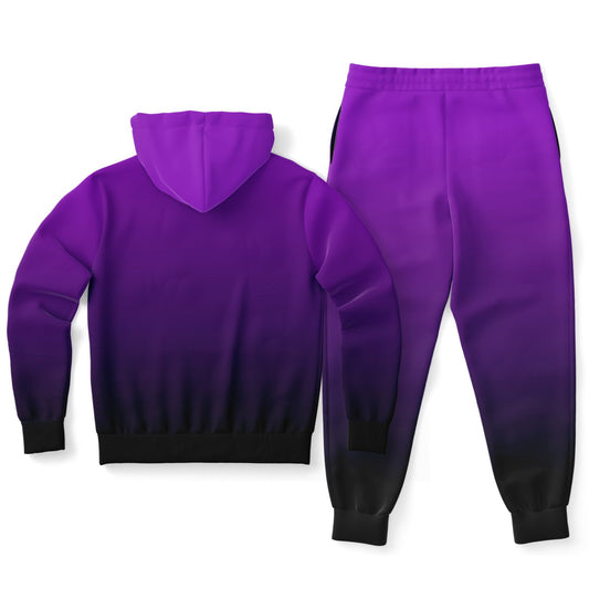 Purple Black Ombre Hoodie Jogger Sweatsuit Set, Gradient Tie Dy Hooded Sweatshirt Sweatpants Women Men Cotton Matching Plus Size Sweats