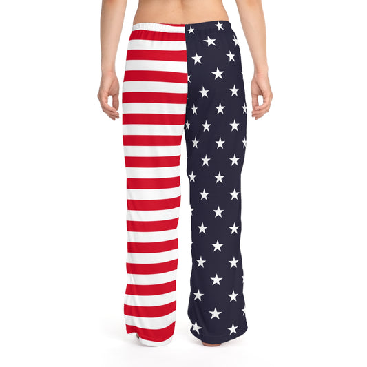 American Flag Women Pajamas Pants, USA Stripes Stars Red White Blue Satin PJ Pockets Trousers Sleep Loungewear Ladies Female Bottoms
