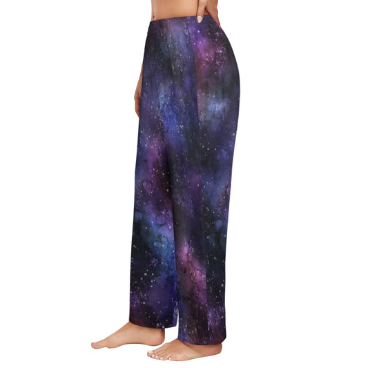 Space Galaxy Women Pajamas Pants, Universe Cosmos Purple PJ Pockets Lounge Sleep Trousers Matching Ladies Female Trousers Bottoms