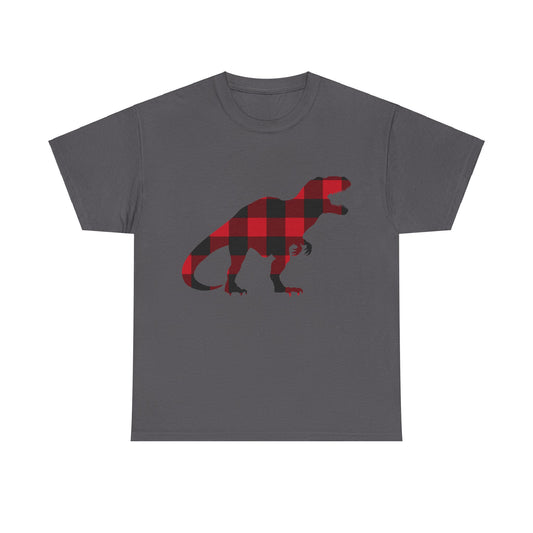 Trex Dino Tshirt, Red Buffalo Plaid Check Dinosaur Designer Graphic Aesthetic Crewneck Men Women Tee Top Short Sleeve Shirt
