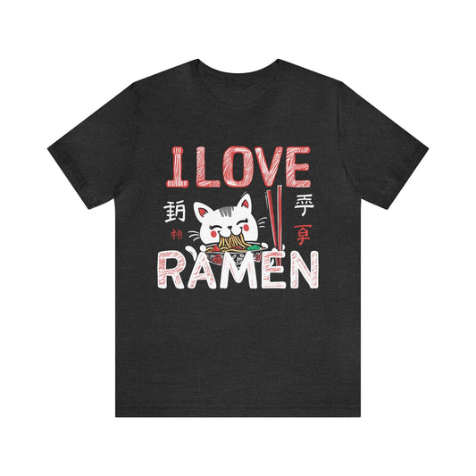 I love Ramen Tshirt, Cat Cup Noodles Eating Food Anime Designer Graphic Aesthetic Crewneck Men Women Tee Top Short Sleeve Shirt