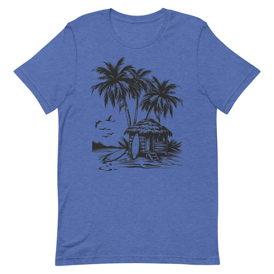 Beach Bungalow Palm Trees Tshirt, Surf Boards Designer Graphic Lightweight Summer Crewneck Men Women Tee Top Short Sleeve Shirt