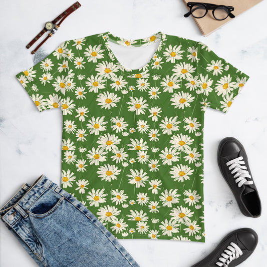 Daisy Floral Women Tshirt, Spring Flowers Green Mom Ladies Female Designer Aesthetic Fitted Crewneck Tee Shirt Top