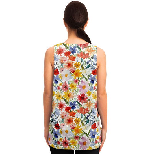 Floral Watercolor Women Unisex Tank Top, Flowers Spring Festival Yoga Workout Sexy Summer Muscle Sleeveless Shirt