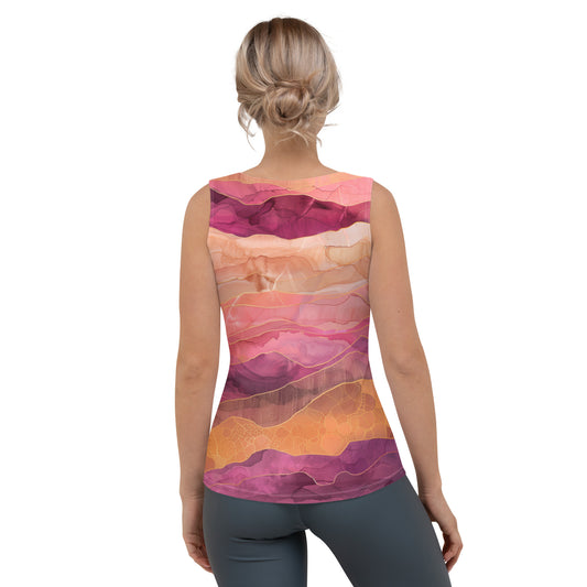 Rose Pink Purple Gold Boho Women Tank Top, Abstract Tie Dye Festival Yoga Workout Sexy Summer Muscle Sleeveless Shirt