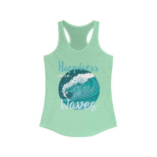 Happiness Comes In Waves Women Tank Shirt, Art Positive Quote Funny Ocean Sea Summer Vacation Beach Lover Top Gift Racerback